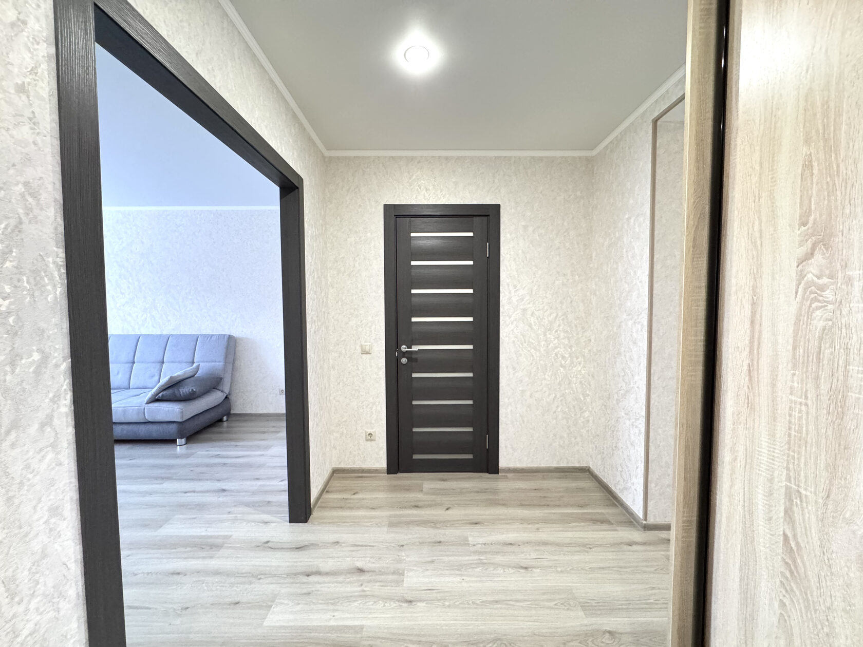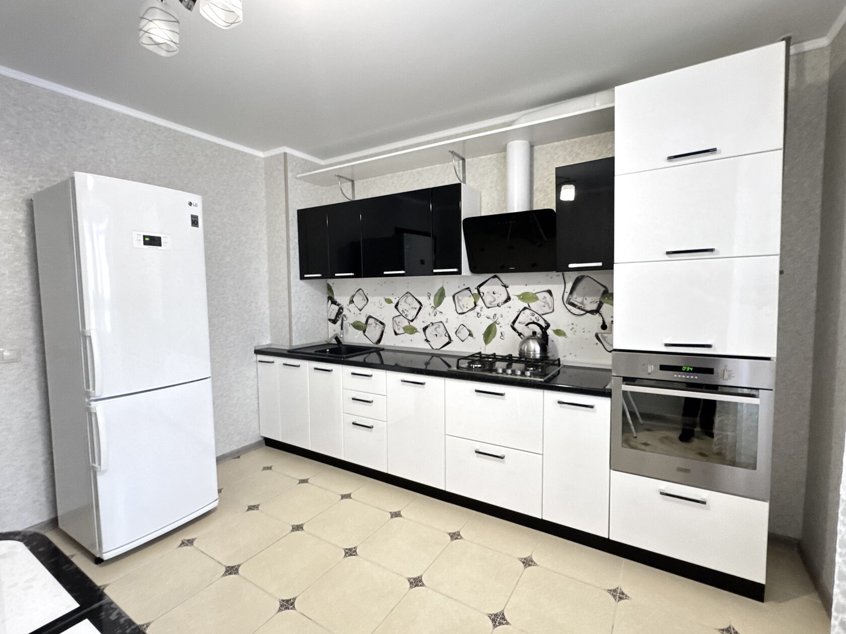 В квартире все готово для проживания прямо сейчас: свежий ремонт, санузел в плитке, на полу в прихожей и на кухне плитка, качественный кухонный гарнитур с бытовой техникой в идеальном состоянии (варочная поверхность, вытяжка, духовой шкаф).